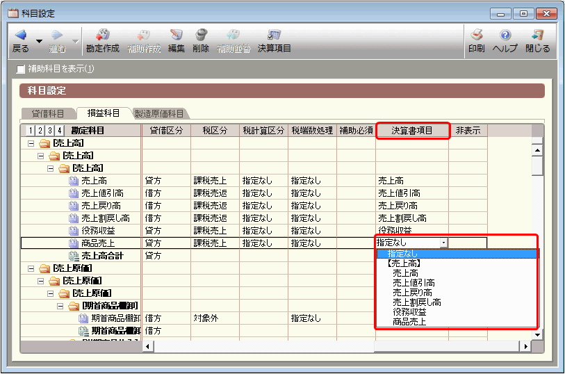 税理士いらず オンラインヘルプ 設定 勘定科目